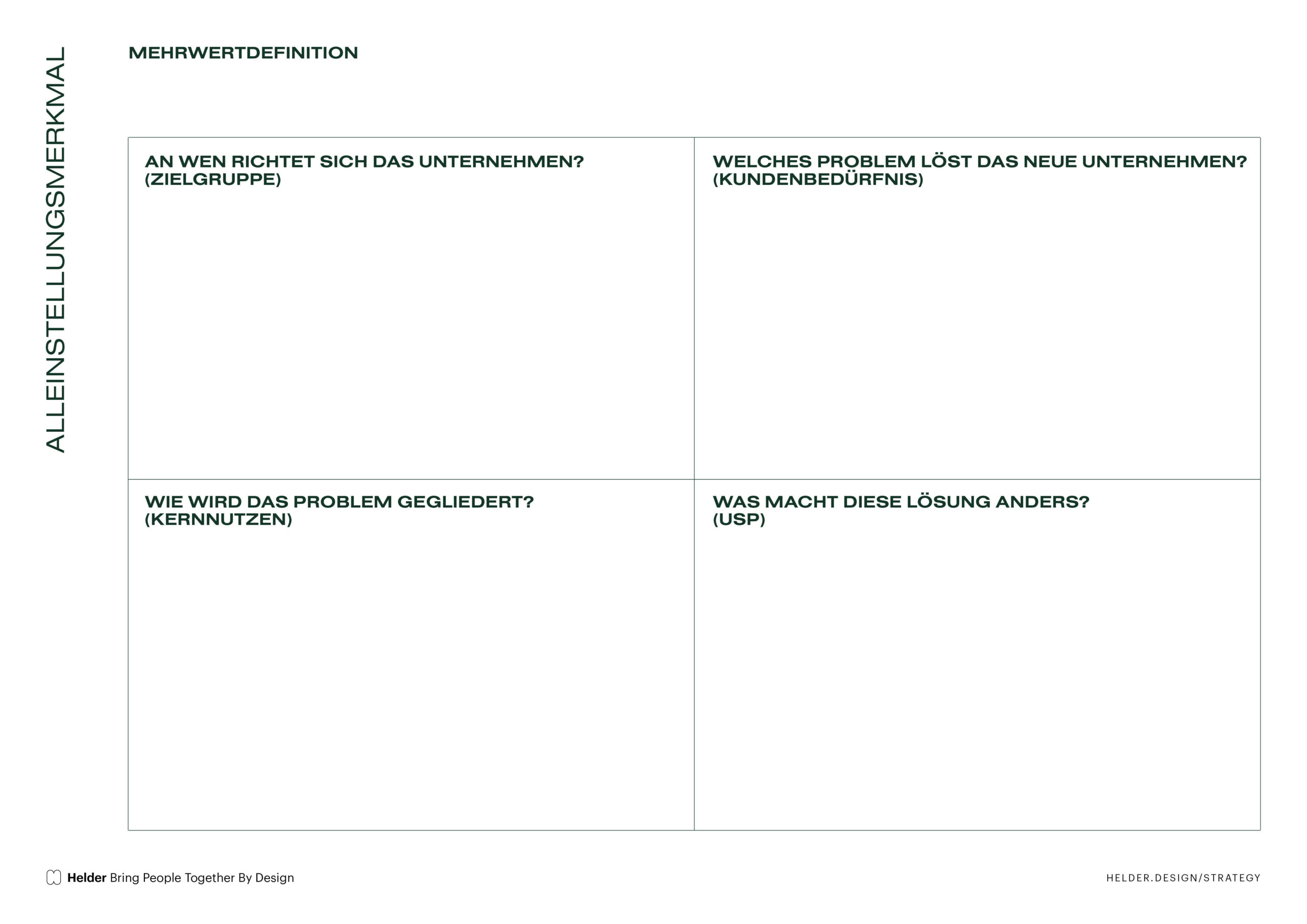 Zusätzlich können Unternehmenskultur, bestimmte Philosophien oder Werthaltungen als Alleinstellungsmerkmale hervorgehoben werden. Ziel ist es, Kunden und Kundinnen einen klaren, einzigartigen Mehrwert zu vermitteln.